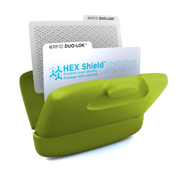 Como sabrás, las tarjetas que llevan el símbolo RFID o la mención de PayPass™ o PayWave™ son vulnerables al robo de identidad. La protección RFID Duo-Lok™ viene en un juego de 2 pestañas. Los protectores de lengüeta Duo-Lok™ están hechos de un compuesto metálico y plástico delgado, flexible y altamente duradero que puede proteger hasta 6 tarjetas RFID cuando se usa con Capsul Case y hasta 2 tarjetas RFID en una billetera normal. Sus diminutas tríadas en una matriz hexagonal protegen sus tarjetas RFID de escaneos no autorizados. La protección RFID Duo-Lok™ fue diseñada para usarse con billeteras clásicas de hombres y mujeres, así como también con tarjeteros Capsul. Protégete con los protectores de pestañas DUO-LOK™ ultrafino Protéjase del robo de identidad.